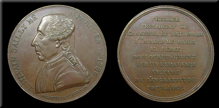 Side 2: PREMIER PRESIDENT DE L'ASSEMBLÉE NATIONALE IER. MAIRE DE PARIS IL PÉRIT DOULOUREUSEMENT SUR UN ÉCHAFFAUD VICTIME DE L'INGRATITUDE POPULAIRE.