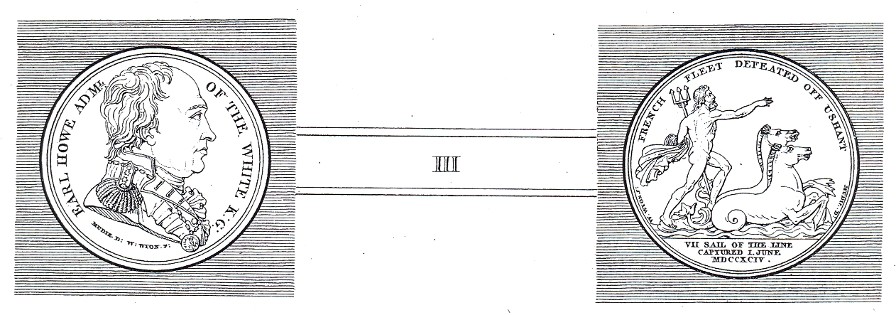 Obv. Bust of Earl Howe in naval uniform, right. EARL HOWE ADM.L OF THE WHITE K : G: |