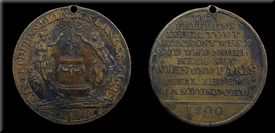 Rev:Dans le champ, en neuf lignes: DES FRIEDENS IUBEL TÖNT DURCH OST WEST SUD UND NORD: HEIL SEY WEIN UND PARIS HEIL IEDEM LAND UND ORT! Exergue: 1800 |