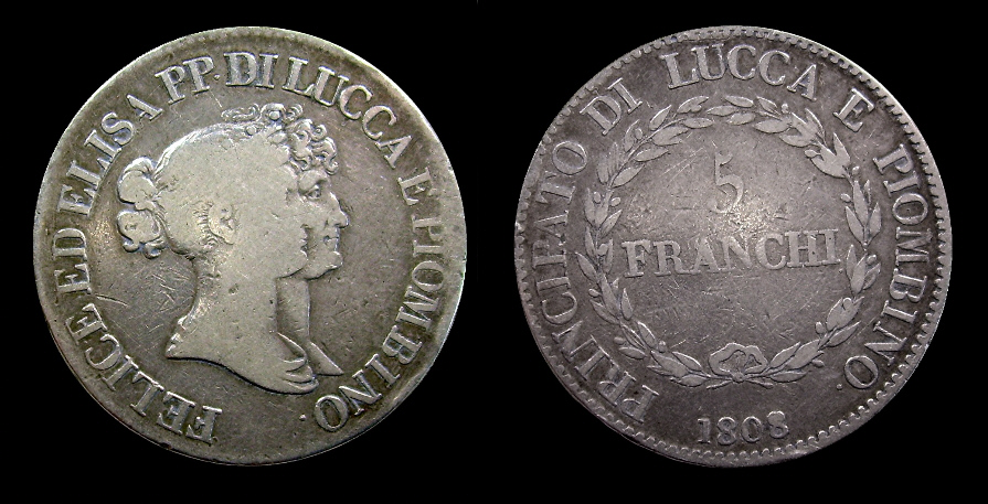 Obv.:Busts of Elisa Bonaparte and Felice Baciocchi right