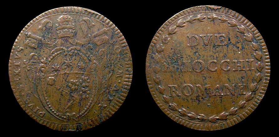 Obv.: Papal coat of arms. Around: PIVS SEXT. P. M. A. XXIII