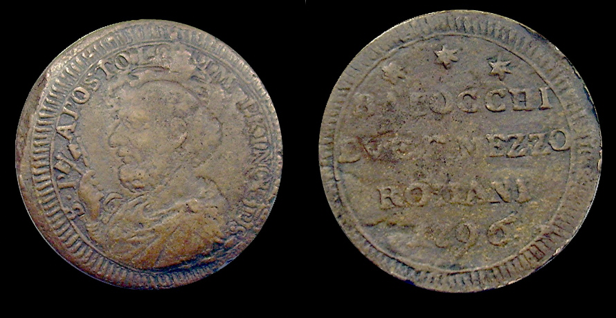 Rev.: MEZZO BAIOCCO ROMANO in three lines within wreath.