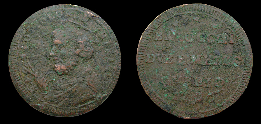Rev.: DVE BAIOCCHI ROMANI in three lines within a wreath