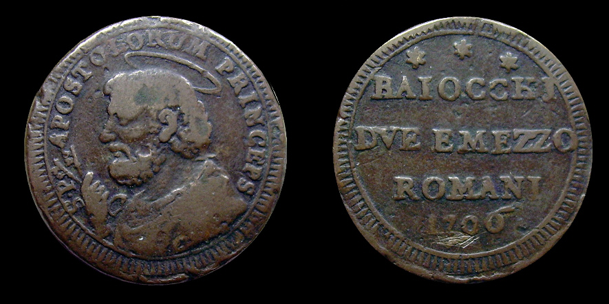 Obv.: Bust of St. Peter, head right. Around, . APOST. PRINCEPS.