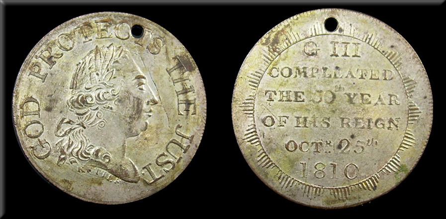 Side 2: Inscription within rays G III / COMPLEATED / THE 50TH YEAR / OF HIS REIGN / OCTR .. 25TH / 1810. |