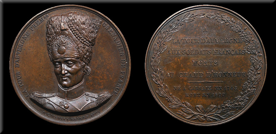 Side 2: Within a wreath:A. LATOUR D'AUVERGNE AUX SOLDATS FRANÇAIS MORTS AU CHAMP D'HONNEUR. ______ NÉ À CARHAIX EN 1743 MORT EN 1800 |