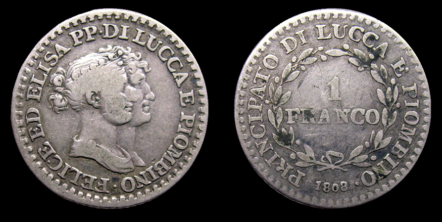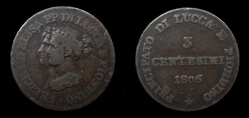 Obv.:Busts of Elisa Bonaparte and Felice Baciocchi right