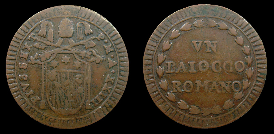 Obv.: Papal coat of arms. Around: PIVS SEXT. P. M. A. XXIII