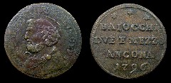 Rev.: BAIOCCHI DUE E MEZZO ANCONA 1796 in four lines. Above: three stars Mm. 29, grs. 17,8 |