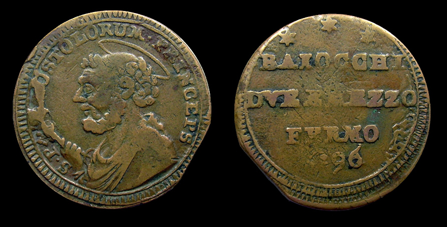 Obv.: Bust of St. Peter, head right. Around, . APOST. PRINCEPS.