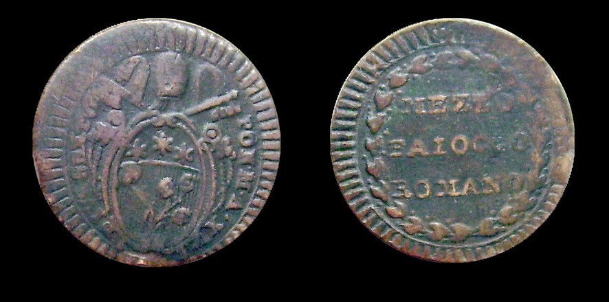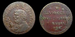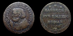 Rev.: MEZZO BAIOCCO ROMANO in three lines within wreath.