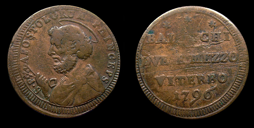 Rev.: BAIOCCHI DUE E MEZZO VITERBO 1796 in four lines. Above: three stars