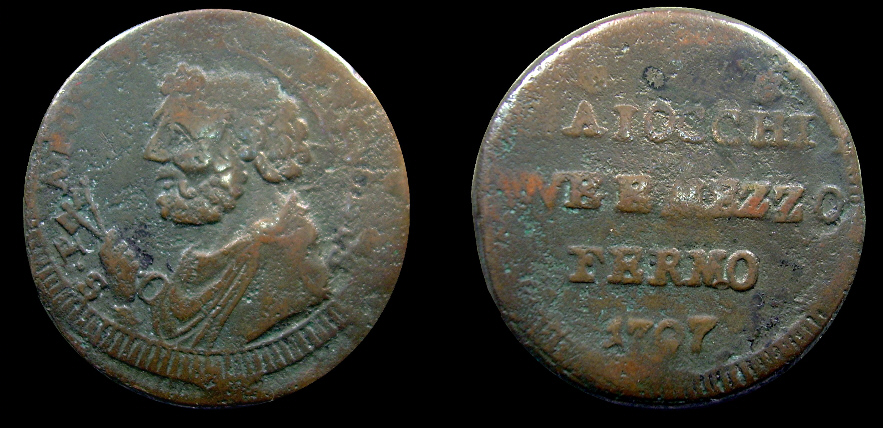 Rev.: BAIOCCHI DUE E MEZZO FERMO 1797 in four lines. Above: three stars