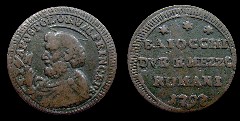 Rev.: In the field: * BAIOC CHI CINQVE on three lines; above, a star. Around: PIVS PAPA SEXTVS ANNO XXIII 1797